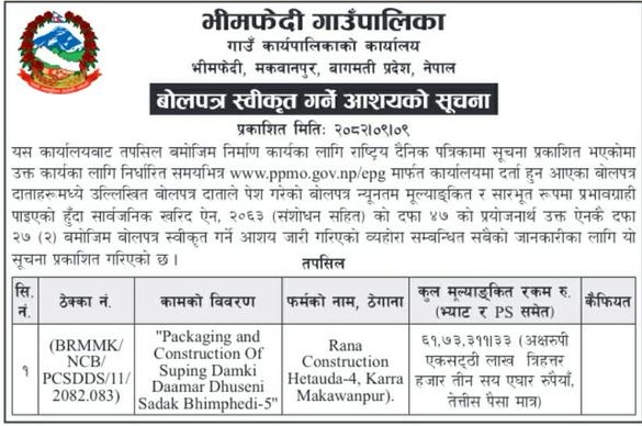 बोलपत्र स्वीकृत गर्ने आश्यको सूचना।।।