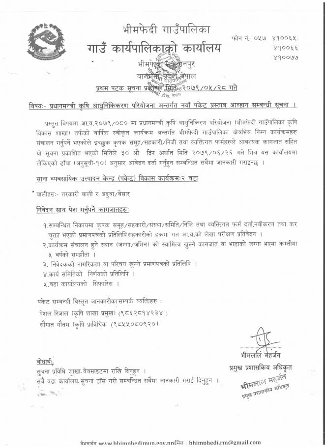 » प्रधानमन्त्री कृषि आधुनिकिकरण परियोजना अन्तर्गत नयाँ पकेट प्रस्ताब आव्हान सम्बन्धी सूचना।।।
