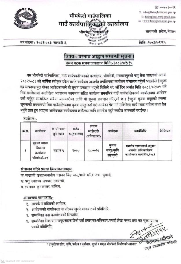 आ व २०८३- २०८४ को वार्षिक योजना प्रस्ताव सम्बन्धी सूचना ।।।