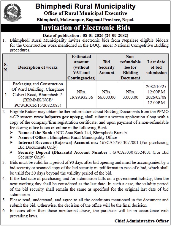 नदीजन्य पदार्थ बिक्रीका लागि बोलपत्र आह्ववान सम्बन्धी सूचना।।। मिति २०८२।१०।०१ को #गोरखापत्रमा प्रथम पटक प्रकाशित सूचना।।।